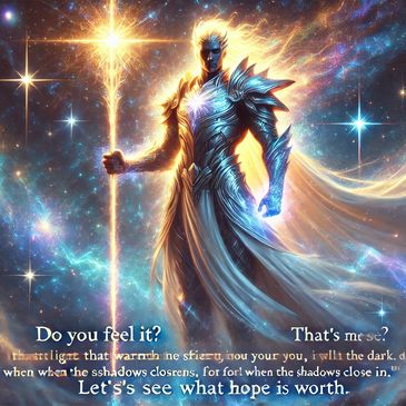 "Do you feel it? That warmth in your heart, the spark in your soul? That’s me—the Dream Guardian, standing in the light to shield you from the dark. Dreamers, you can rise, for when the shadows close in, I’ll be there to guide you. Let’s see what hope is worth."